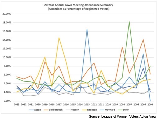 The requirement that voters be physically present at Open Town Meeting prevents many registered voters from participating in their town's governance. Why?